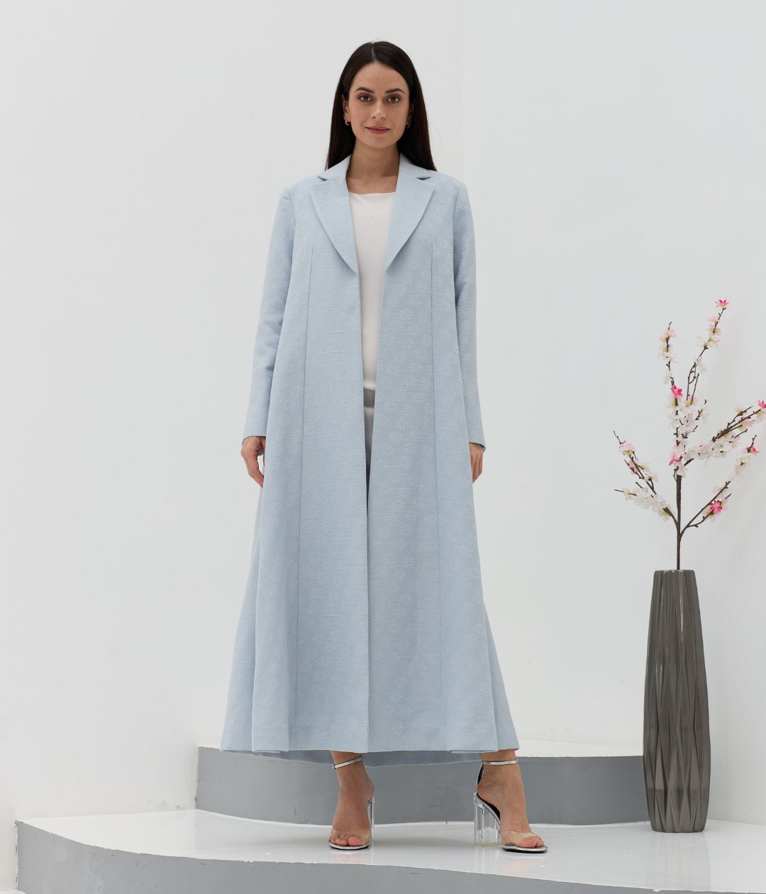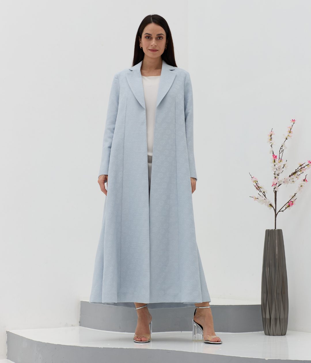 PRODUCT : ID 1181 CATEGORY : COLOR ABAYA COLOR : POWDER BLUE HEADCARF : INCLUDED